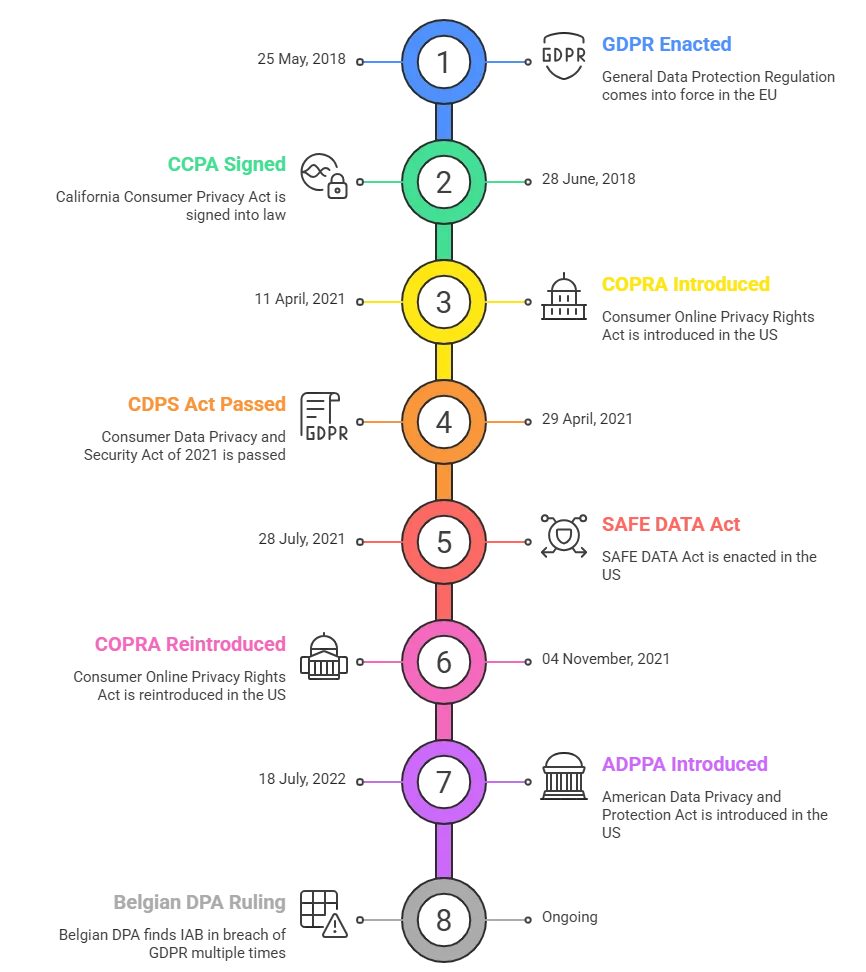 Timeline of legislations supporting privacy of internet users against third-party cookies